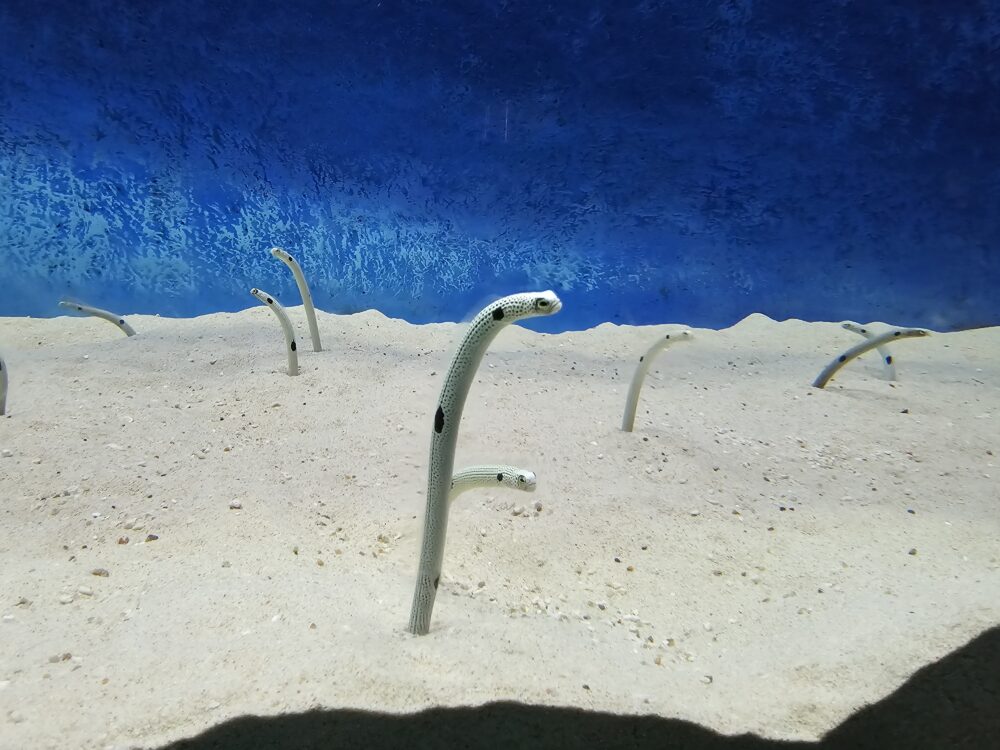 警戒するとすぐに砂の中に隠れてしまうとのことでしたが、人間に慣れているのかずっとにょろにょろゆらゆらしていました。