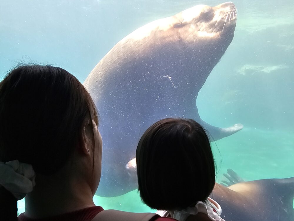 休憩を終えさらに進むと、巨大なセイウチやトドたちが暮らす大きな水槽が見えてきました。