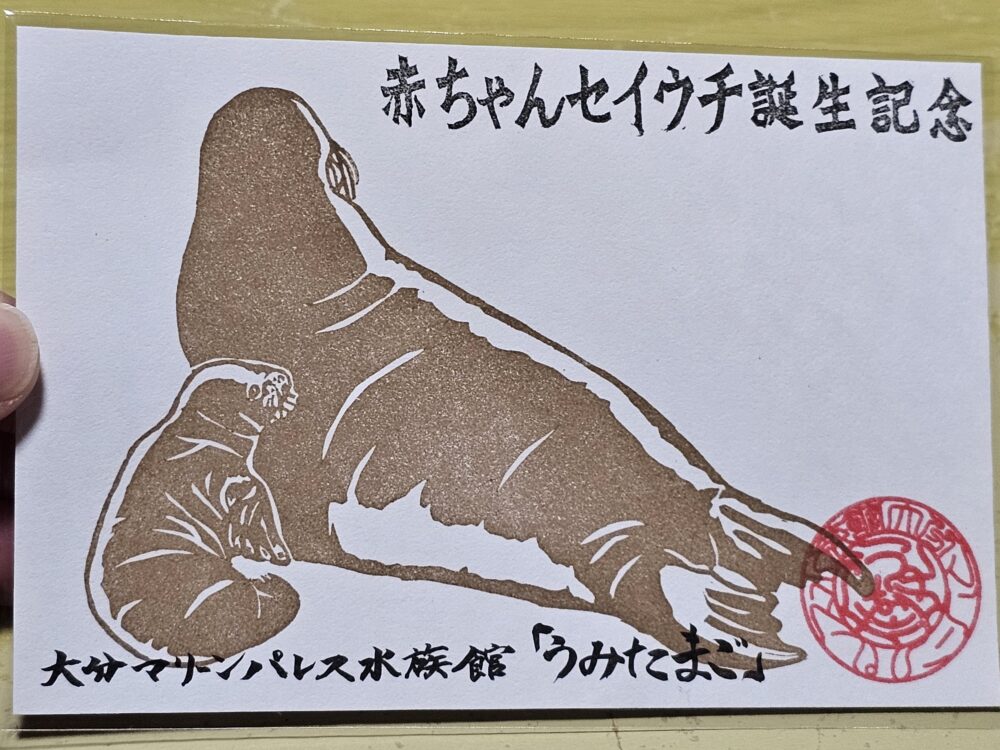 なんと、うみたまごさんでいただける魚朱印と、マリンワールドさんでいただける魚朱印を合わせると一枚の作品が完成するという、非常にユニークなものだそうです。